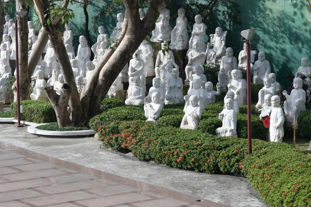 Yet, Fo Guang Shan encourages the viewer to see more than simply the Buddha. As I walk past the reception area, I walk by the Garden of 500 Arhats, wise Buddhists beings. As I move toward the Memorial Hall, I walk by numerous Bodhisattvas, yet-to-be compassionate Buddhas. More controversial for Li May, a young woman Buddhist from Singapore with whom I am touring Fo Guang Shan, is the additional Confucian and Taoist figures. In Taiwan, to her dismay, Buddhists have figures beyond simple historic Buddha figures.