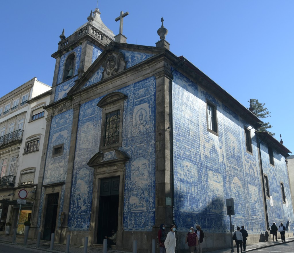 As I walk, I pass two churches joined together. The Church of the Carmelites was built in 1628 and the Igreja do Carmo was built in 1768. Its blue tiles depict the creation of the Carmelite Order and Mount Carmel in Israel.