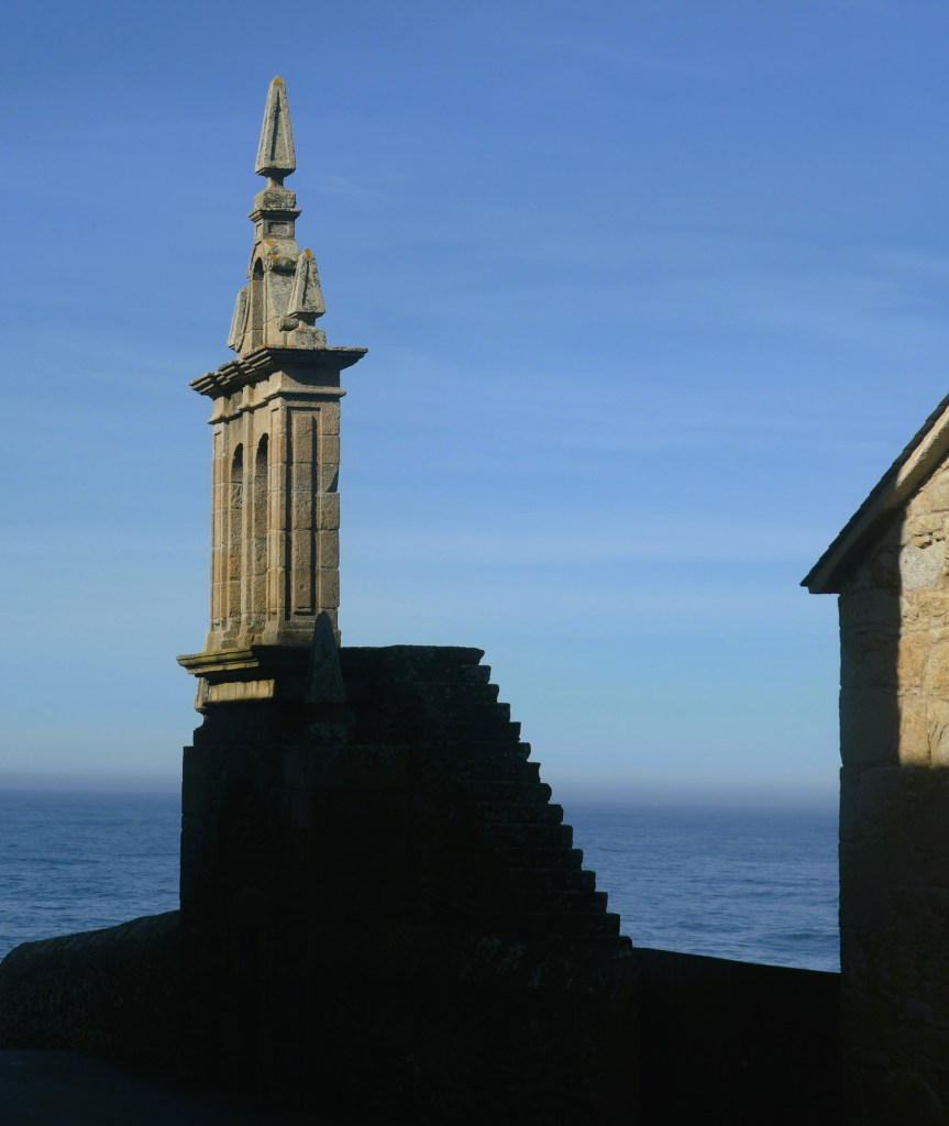From the village of Muxia, Mary and I walk several hundred meters to the chapel. Mary and I can get quite close to the ocean. More so than Finisterra, I feel the waves pounding against the rocks; I hear their roar. Even more than Finisterra, I feel that this could be the end of the world.