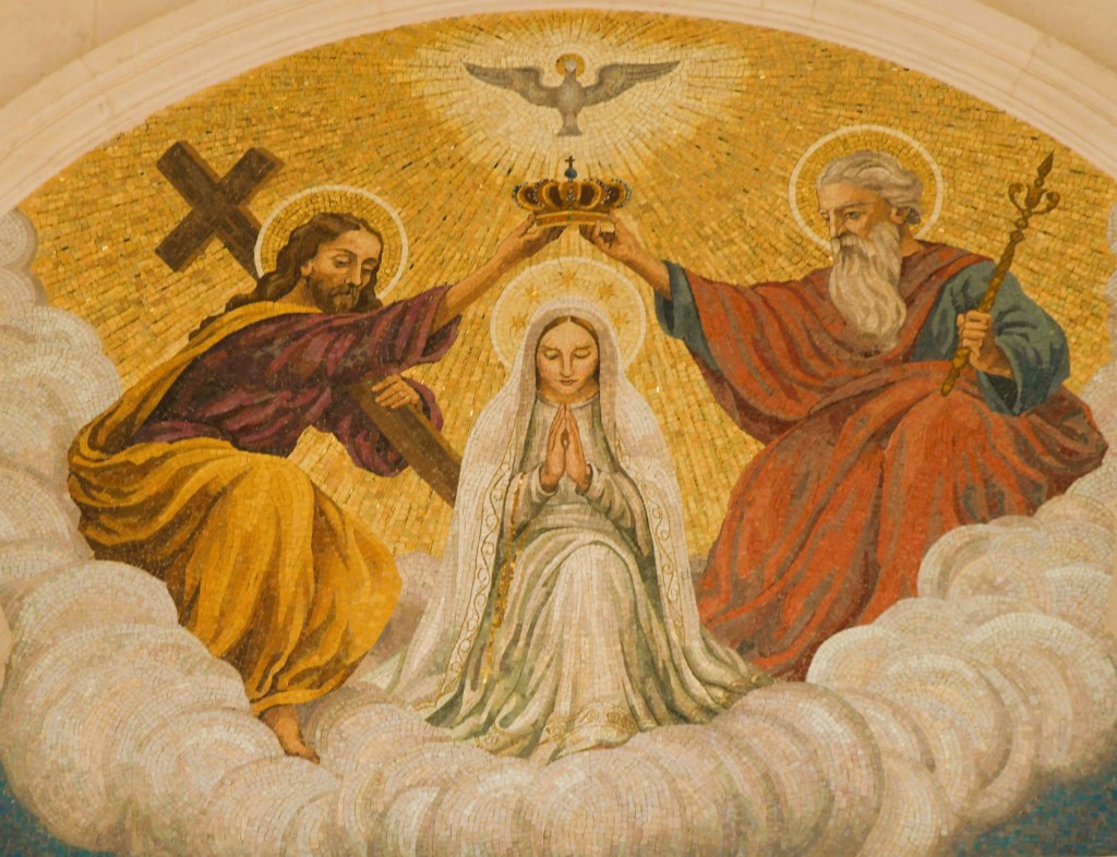 The interior of the Basilica is beautiful. In the main entrance is the following mosaic of the Trinity crowning Mary.