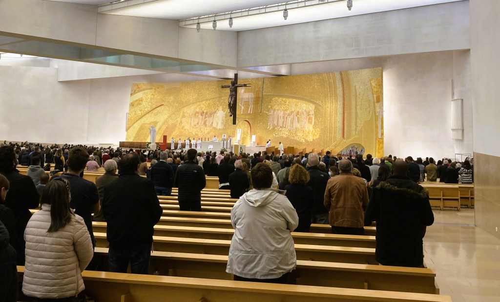 Directly opposite the church on the far end of the plaza is the Paul VI Pastoral Center, built in 1982 and dedicated by Pope John Paul II. It is a center for study and reflection on the message of Fátima. While I went into the building and briefly watched a service in this very large sanctuary, I later learned that the building also has accommodation for four hundred pilgrims. Church officials know who will come and what their needs are!
