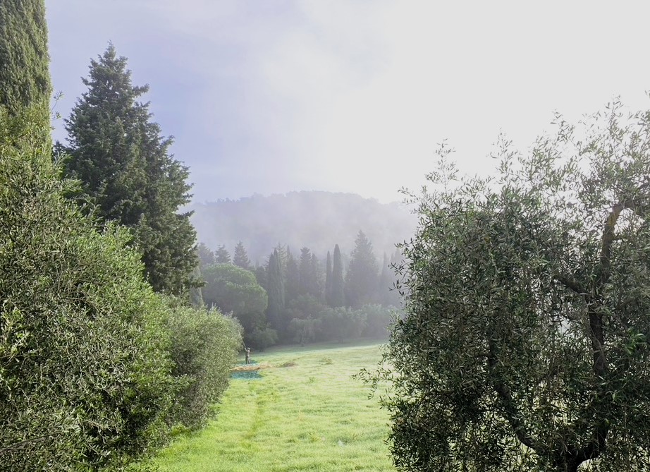 Back to the enchantment of Tuscany. A solitary walker through the vineyards.