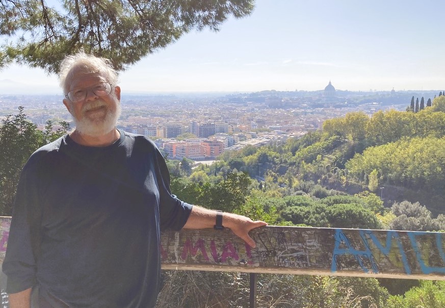 I take a train from Campagna de Roma to a stop inside Rome’s perimeter road. I begin to walk. Walking on city streets with crowds of people is a strange sensation. As I walk up Monte Mario Alt, past the Vatican Observatory, I have to abandon the trail because a dozen bicyclists are powering their way down the trail. Argh! There is such irony regarding the Vatican’s astronomical history. In early 1600’s Galileo condemned for supporting Copernicus’ view that earth and planets revolve around the sun; now the Vatican has an observatory within a couple of miles of Vatican.