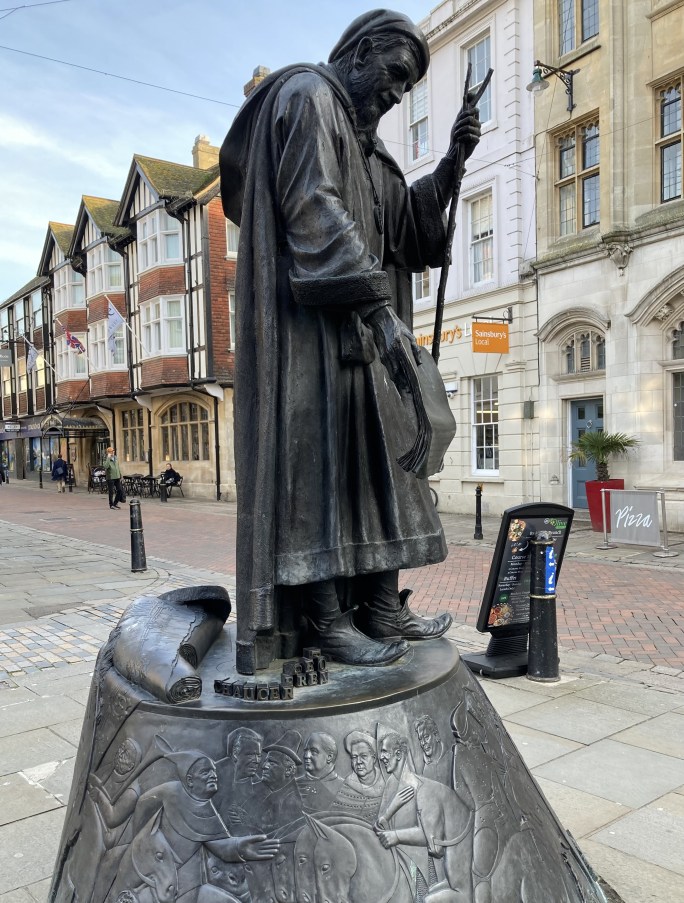 As I depart Canterbury in a few hours, I wonder if I did as much walking as I needed? I’m probably as ready as I’ll be. For those parts that aren’t, well I’m just going to walk slowly into shape. Hopefully, my body will get reacquainted with itself as the first couple of days are only around ten miles per day. As I depart Canterbury, I wonder about the easily missed detour near Sheperdsville that previous hikers warned me about? Where is the P&O Ferry terminal which I have to reach by noon in two days in order to catch the only ferry allowing foot passengers? Hopefully, my mind can solve these riddles. As I depart Canterbury, my spirit is slowly settling into that sense of peaceful departure. A Sharing. A Brazilian woman and I sought Canterbury’s statue of Queen Bertha (my mother’s name). Aid. Two young local men helped us find that statue (although one laughed at his erroneous thought that it was Lady Guinevere). Kind words. The Dean of the Cathedral and another priest kindly asked me about my wallk. After I declared that I hoped to rest today, he asked me later this afternoon in a chance meeting if I had rested. “I didn’t think you would” after I sheepishly admitted that I hadn’t.