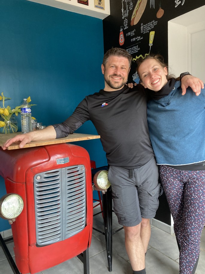 Caroline and Arno outside Arras. After greeting them with “Bonjour” a mile or two earlier, I start to chat with them. Well, honestly I was complaining that my iPhone was about dead and my battery bank hadn’t accepted last night’s charge. “If you don’t mind a ten minute walk, you can come to our place to charge your phone.” Shortly later, after asking where I was staying, they offer “We can even take you to the Anne Frank residence.” I’m no purist! So saving 3-4 miles sounded heavenly to me!! Caroline is a teacher; Arno is in justice system. Say a prayer for him that he can pass an English exam in order to be a teacher also.