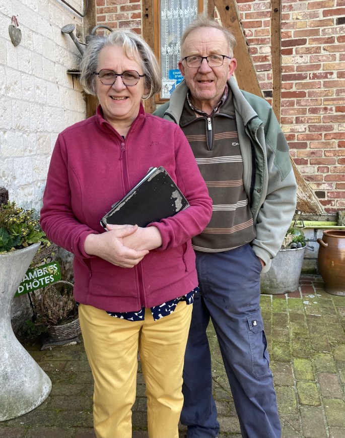 Jean Baptistery and Colette in Amettes. They are a Via Francigena institution! Welcoming pilgrims since 1998 in their home, they are a kindly face with exhaustive knowledge of the pilgrim world. Last year over 200 pilgrims stay with them. My photo is added to their collection of every pilgrim’s photo since 1998! Frustrated that they couldn’t find two nights of lodging for me, Jean- Baptiste drove me 20-25 miles so that I could walk into Arras.