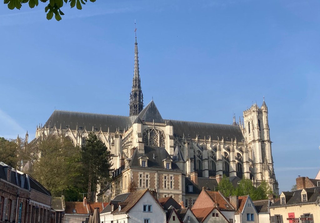 Amiens. Wow!!! The power of a perfectly proportioned exterior with the “incredible lightness of being” interior. Did I say “Wow!!!” All the stone figures adorning walls, facades, corridors, chapels and more overwhelms the viewer. One, the Weeping Angel, was turned into a postcard during World War I. The Labyrinth, representing our journey through life, is centered in the middle of the Nave. How many people have walked that labyrinth? Then there is organ and choral music. Although I had to leave to catch my train to Arras prior to the formal service, I heard the practice. The organ filled the Cathedral, no small feat since it is twice the size of Paris’s Norte Dame Cathedral.