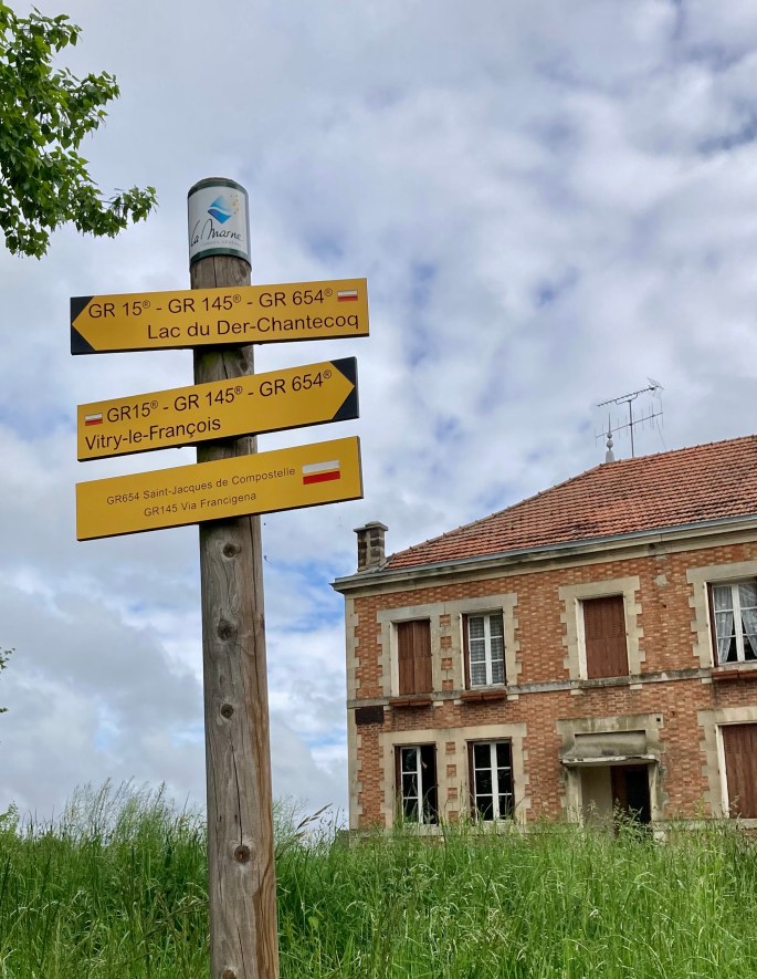 Even without AAA maps, or topographical trail maps, or google or other apps, we can gain a sense of location, route, and destination by road signs and advertising signs. Reims- 50 km. “Supermarche 1.5 kilometers ahead”.