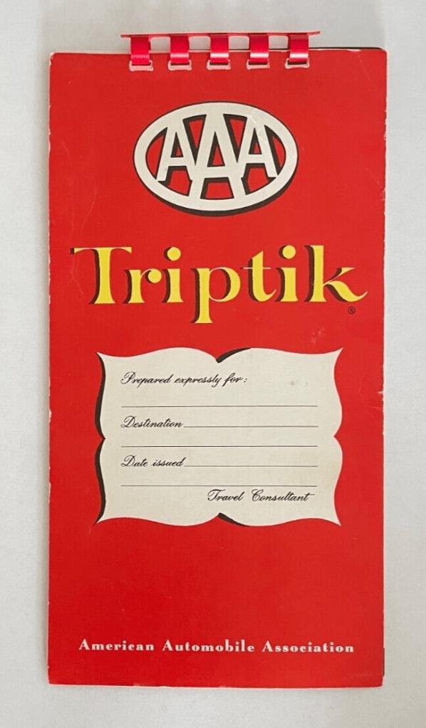 We know that he didn’t have AAA to help. My parents used AAA maps and their TripTik. When Dad an Mom took Chuck and I on a trip, the navigator Mom always told Dad where to go. She had a Triptik, a AAA spiral route mapset which AAA prepared especially for trips, as long as one gave them sufficient notice. Or, she used the AAA state or regional maps where the route would be highlighted in yellow. A trip without an always reliable AAA map? Never!