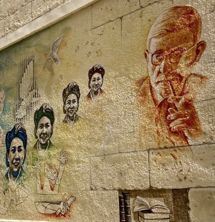 Street art of Laon. I love how the paintings often has one individual looking straight at me.