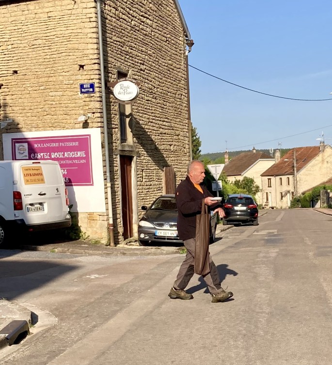 Mainly in larger villages and towns, I see the “off- to-work” walker. Sometimes they have a preoccupied look. They are already thinking about all the responsibilities to be faced or maybe their thinking about a friend or family member. Sometimes the preoccupied look comes from the person texting. I still don’t know how one can walk and text at the same time. I’d end up on my duff. Also, I must confess that numerous very well-dressed women walking to work got my attention. Beautiful hair, long wool coats, black heeled boots! Classic French looks!