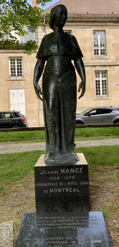 One statue is to Nurse Mance, a co-founder of the Hotel-Dieu, the first hospital in North America (located in Montreal).