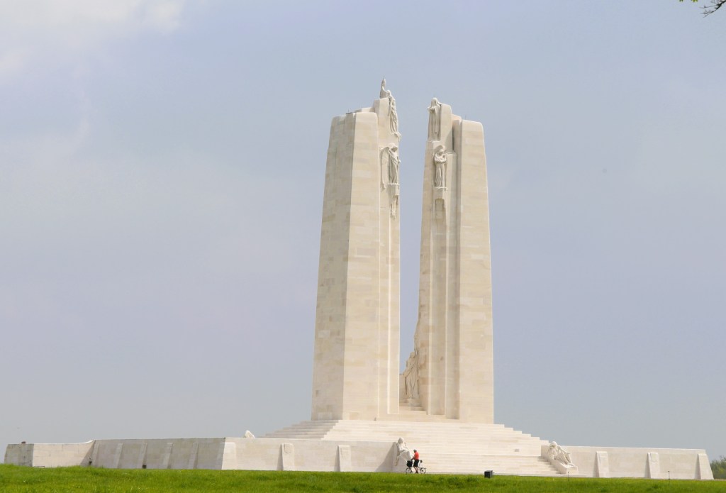 Several photos of Canadian memorials such as the Vimey Ridge Memorial and the Beaumont-Hamel Newfoundland Memorial.