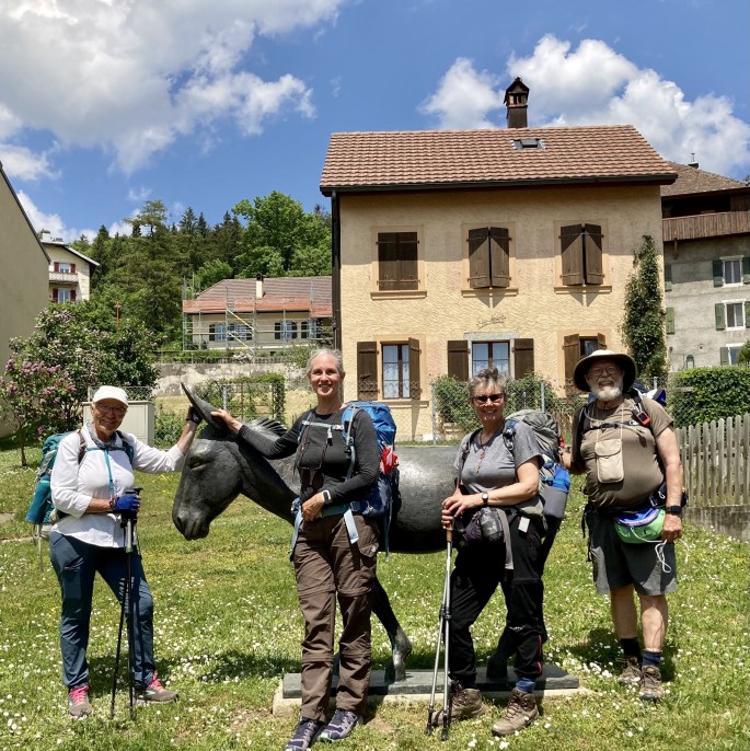 The other highlight of the day is walking in the River Orbe gorge. Think of a stream or river walk in the Great Smokey Mountain National Park. Delightful. Cooley refreshing. It’s middle of the afternoon. We all are watching the storm clouds build. Since the women are staying in a different town than Orbe, we say our good-byes. One never knows when one will see a fellow hiker again.