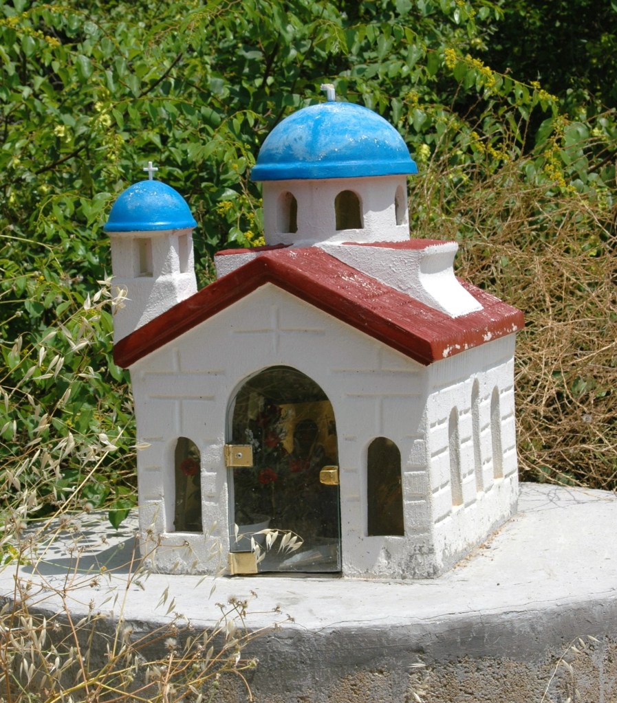 I’m familiar with other religious markers. In Greece, the roadside markers may be open or closed chapels with an icon and a candle, the size of “your free neighborhood book boxes.” In India, the markers may be linghams representing Shiva or even large statues of Shiva as at Haridwar. In Tibet, the markers may be small or towering cairns, sometimes with Tibetan prayer flags.