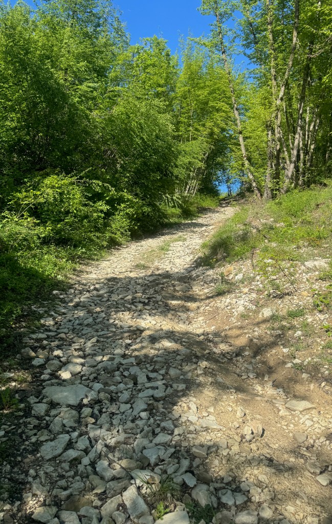 Past Terenzo’s last buildings, the trail gets “interesting,” or “hard” in other words. All uphill.