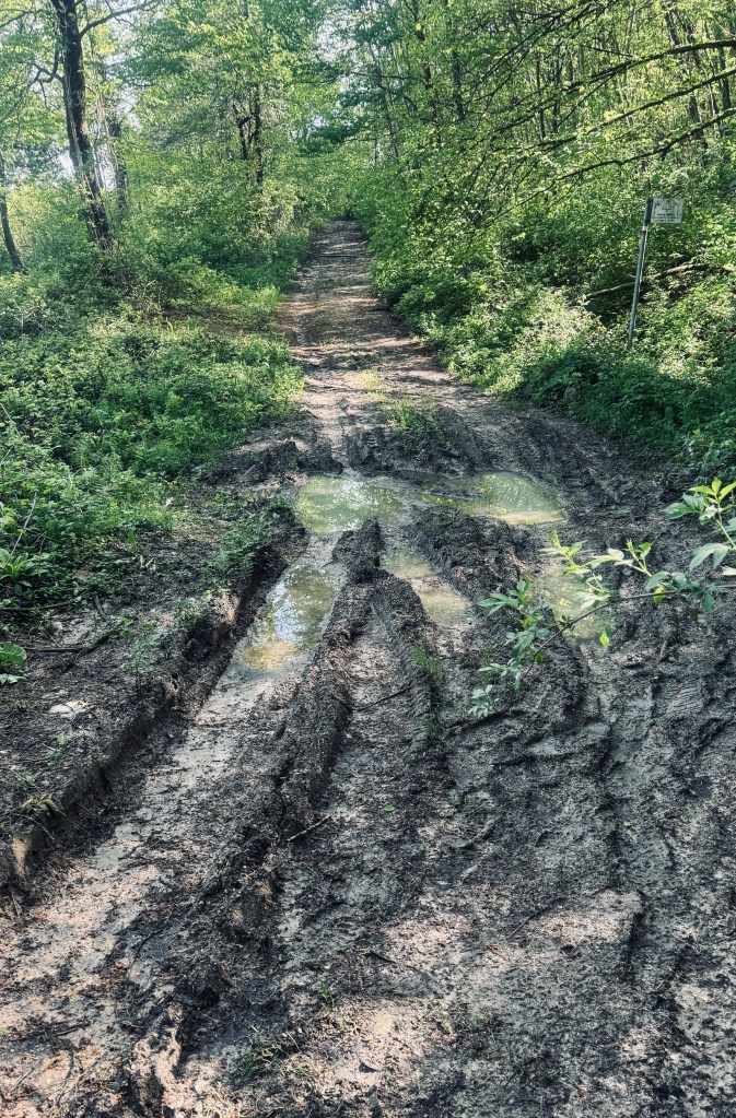 When a 2-3 inch mini-pond covers the whole trail, with a wire fence stretching down one side of the trail making it unwalkable, he makes me try to walk on the other slippery side. What happens? You guessed it. All of a sudden I’m getting washed, except that I still have my shoes and socks on. Oh well! Squeesh. Squeesh. Squeesh. Upward and onward I go.