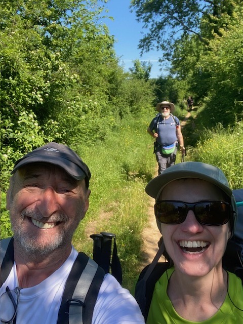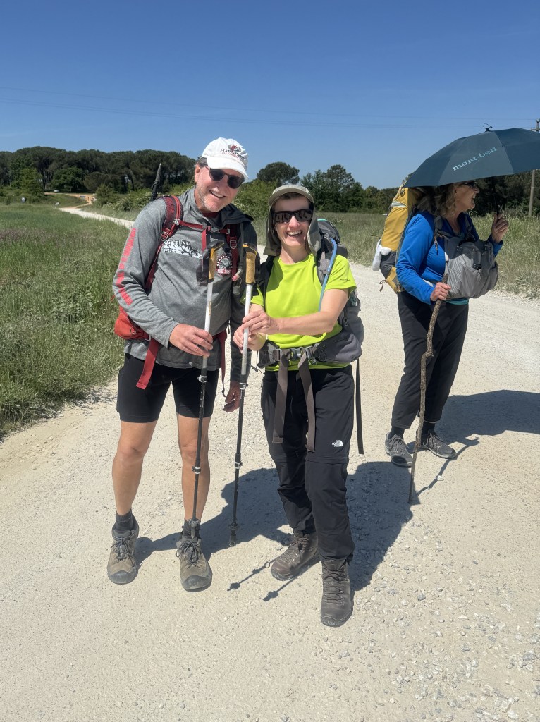 She continues. “The next day, I meet Cheryl and Pam. I’m amazed at two 75-year old women walking 150 miles. I meet several Italians. We talk and laugh. I loved it. Then I meet you before my birthday. The next. Day I toasted you.”