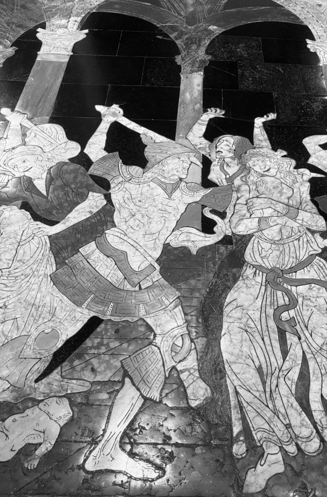 Looking downward, the floor is filled with over 50 inlaid marble scenes. Walking around the Dome, I get a further sense of how large these inlaid marbles works are. The Slaughter of the Innocents is gruesome in its detail.
