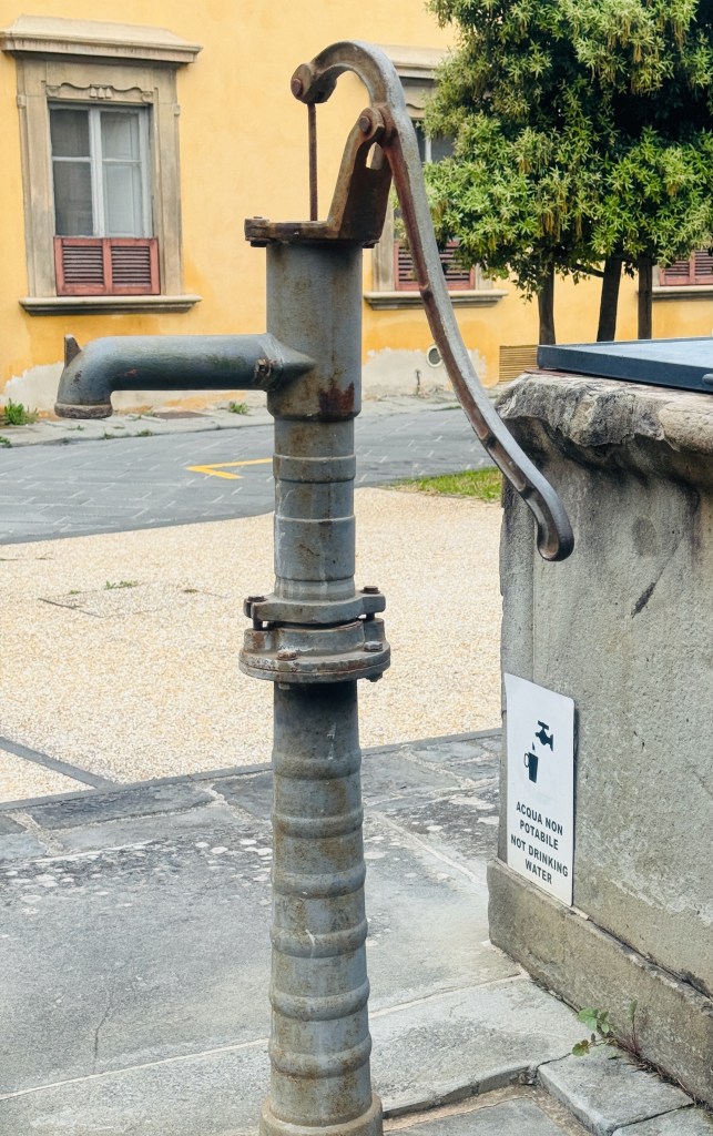 The village hand- pump, just like the outdoor pump from the door at grandma Jones’ Lowder home; however, its water is non-drinkable.