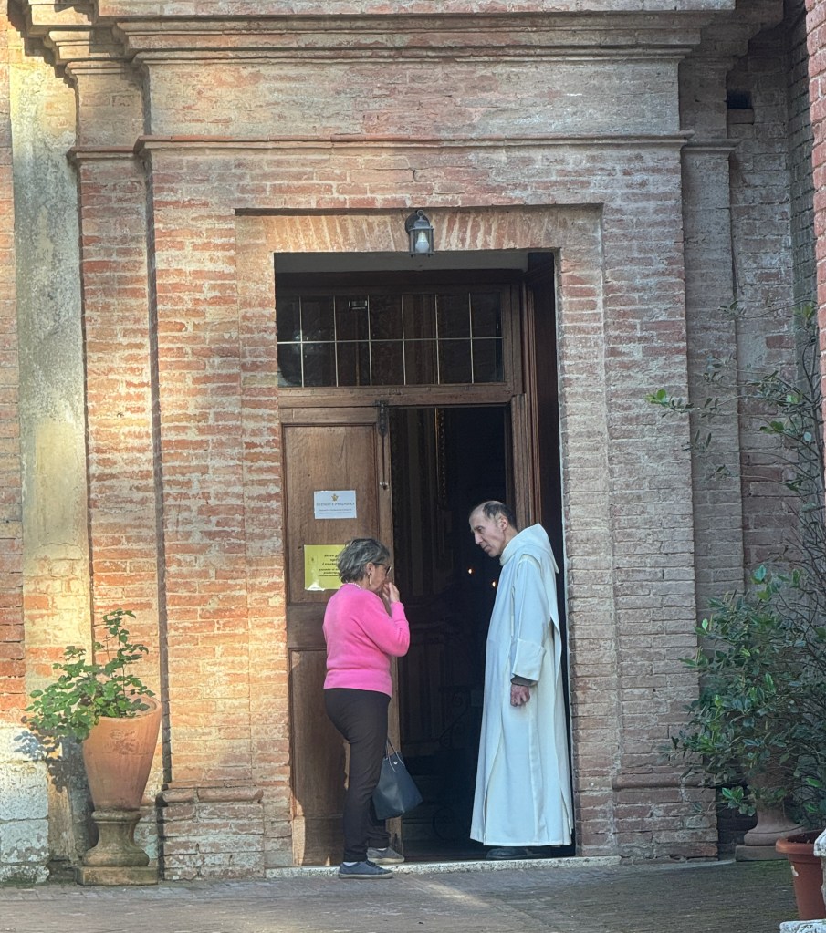 The monks don’t keep to their cells. While not frequent, I see them either talking with visitors or with their fellow monks.