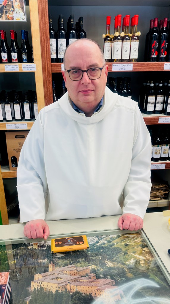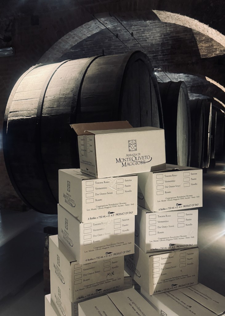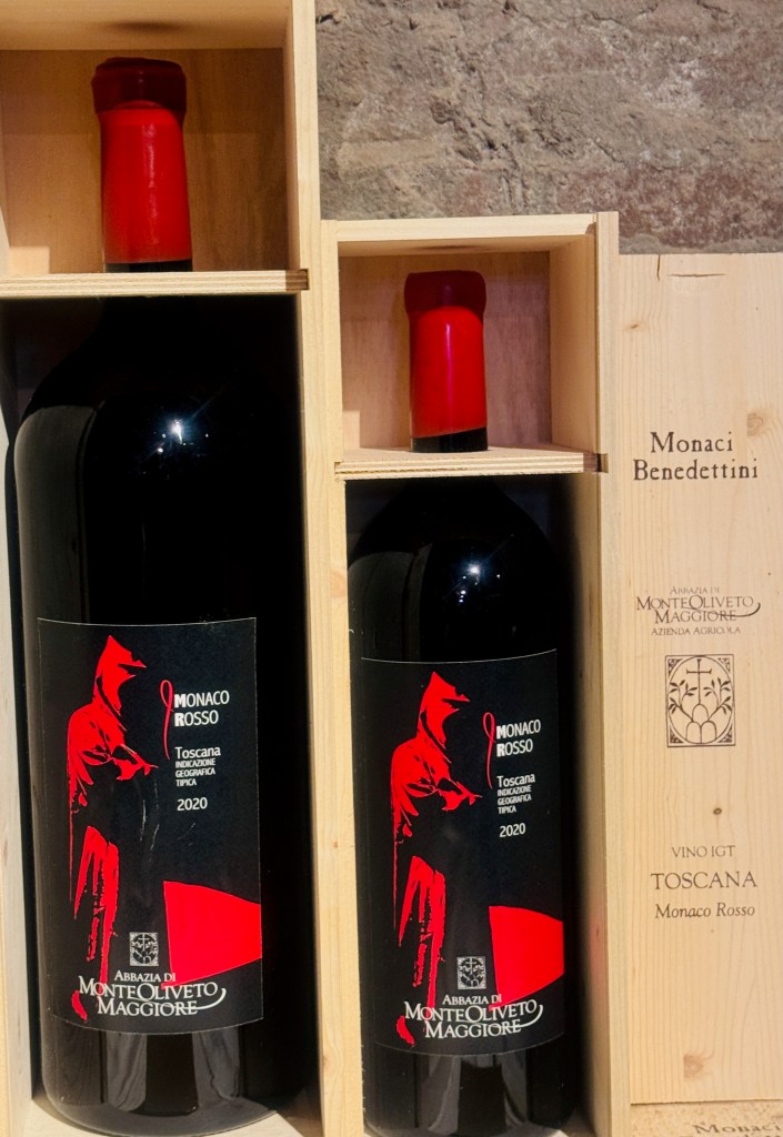 Abbey Mt. Oliveto Maggiori is a Benedictine monastery with a long, long history. As I mentioned in the previous post, the cloister walls depict scenes from the life of St. Benedict.