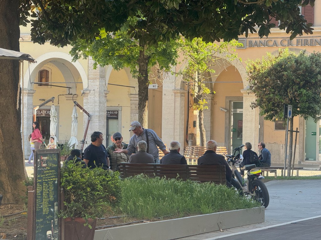 There are worlds on each side of my path. Gardeners and wood-cutters. Young children holding onto each other during a class excursion; groups of high school kids gossiping or bragging until the very moment they have to enter the school building. Friends catching up on family news as they buy their daily bread; old men sitting on the same bench, having the same daily conversation they’ve had for years.