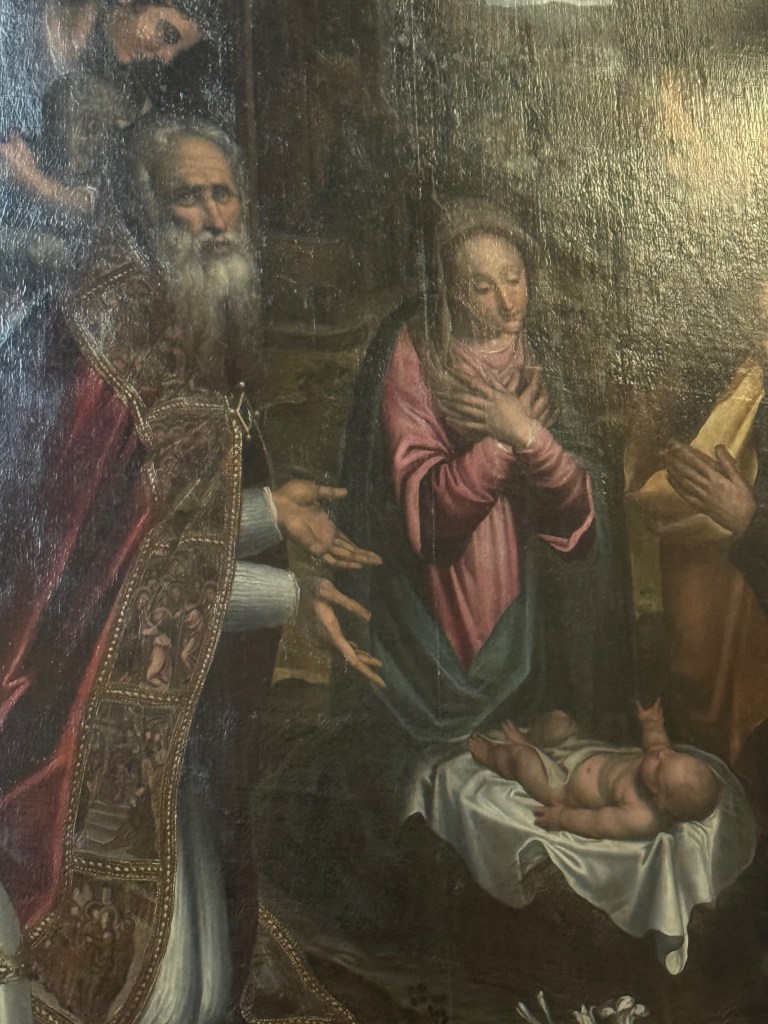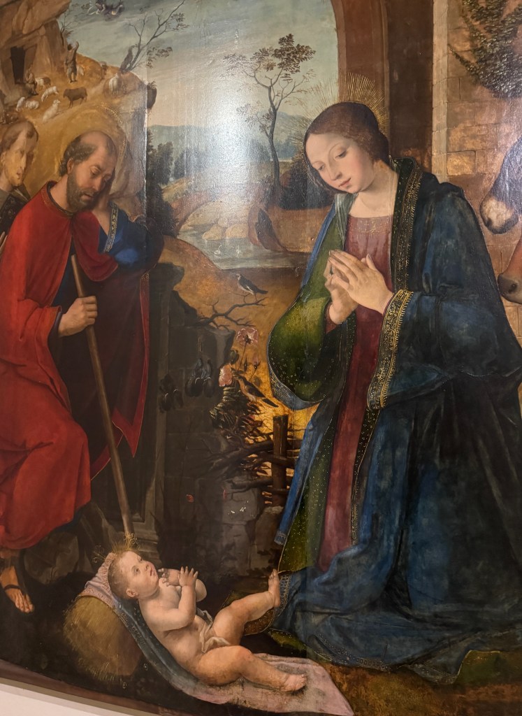 I’m including both representative art as well as those pieces which show a particular twist on the theme. Since I’m going through six weeks of church and museum visits, my organization skills are not the best. Plus, I can’t figure out how to edit and reorganize photos on FB. I’ll start with infancy in this post. I’ll move in the next posts to crucifixion, and then to resurrection. I may include another post on other interesting art. We’ll see.