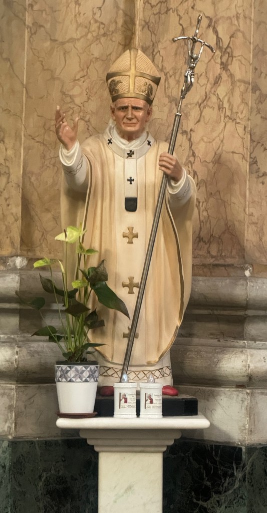 Furthermore, there are over 200 “Incorruptibles.” Bodies not embalmed, but displayed bodies manifesting their sainthood. Coming from a Protestant perspective, I and other Protestant pilgrims like Steve and Elaine do find this practice strange.