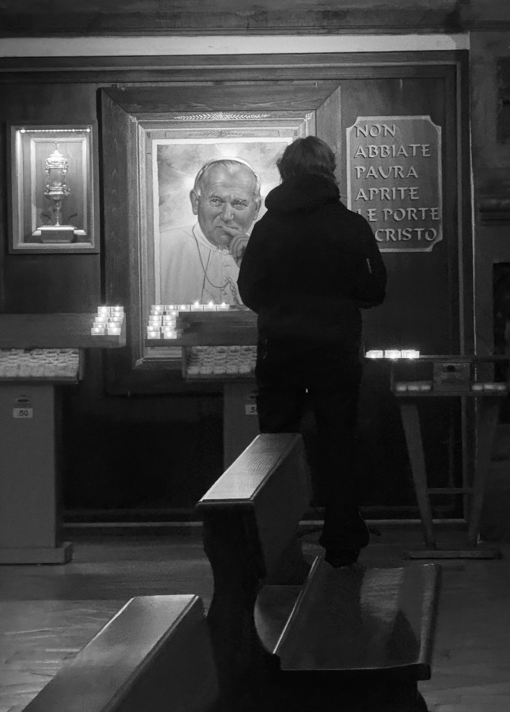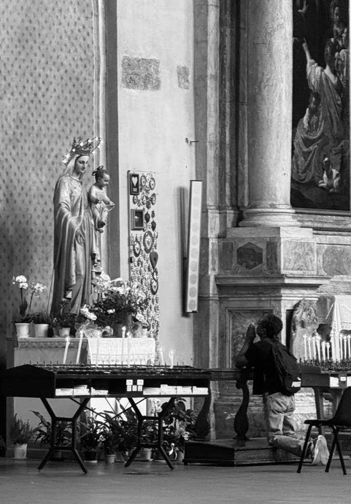 They are not alone in another sense. They constantly are reminded of pilgrims of other periods. In Pavia, they can see the tomb of Ambrose and Augustine. In Assisi, the tomb of St. Francis. I see numerous photos and paintings of Mother Teresa. While staying in Assisi, I see people praying in front of a picture of Carlos Acutis, a young teen-ager who died in 2006. As the “patron saint of the internet,” Acutis is going through the process of beatication. The first “millennial” to be made a saint.
