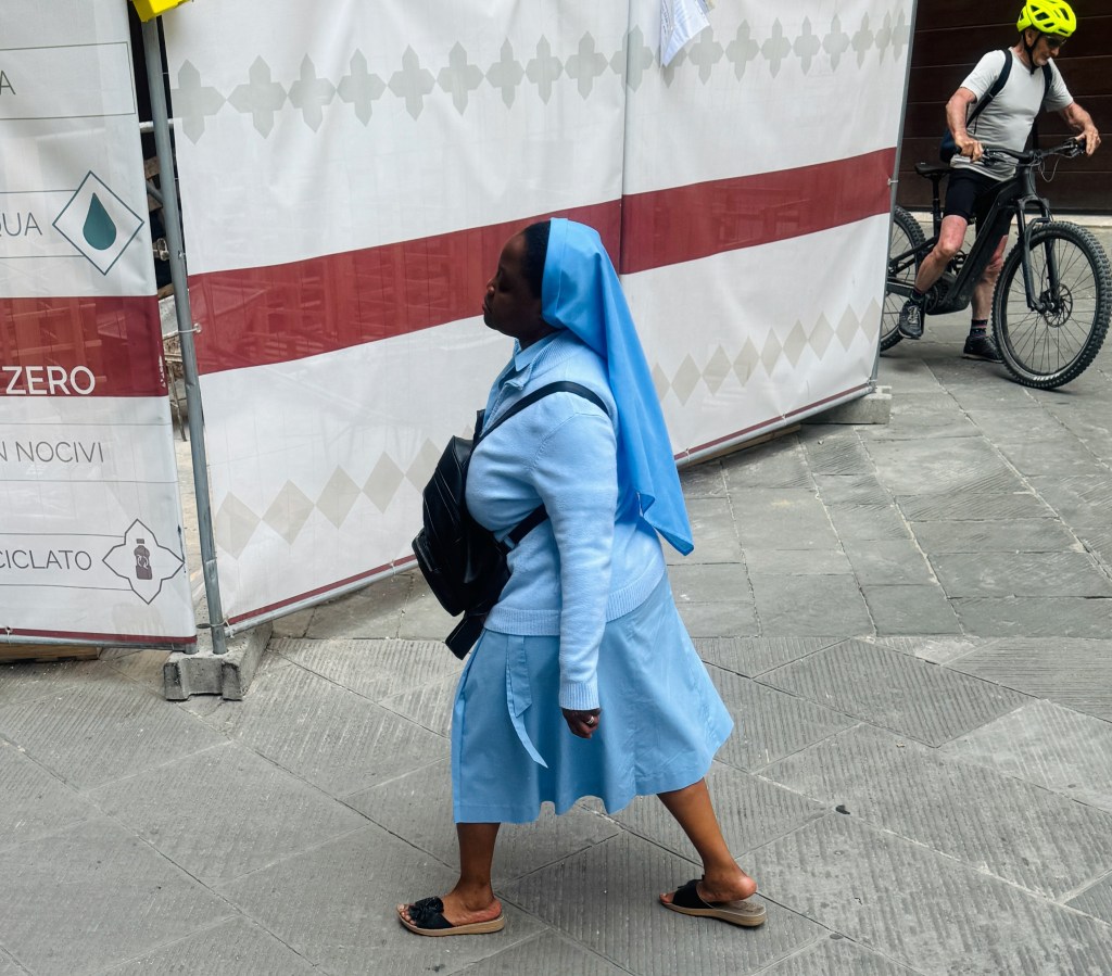 Besides religious diversity, I did see “continental” diversity. The number of individuals of African ancestry stands out. Not knowing Italy’s political situation nor each individual’s political status, I don’t know how many were migrants or African-Italians. Another visual reminder that political borders are porous.