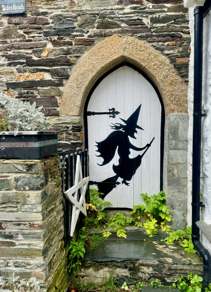 Sheila drops me off at Boscastle, saving me 4 +/- miles. It’s drizzling. I walk through this small village which was overwhelmed by rain and flood waters in 2004. Fortunately, the government, the insurers, and a vibrant community spirit restored the village. It even has a Witchcraft Museum and Nomis who is climbing a building.