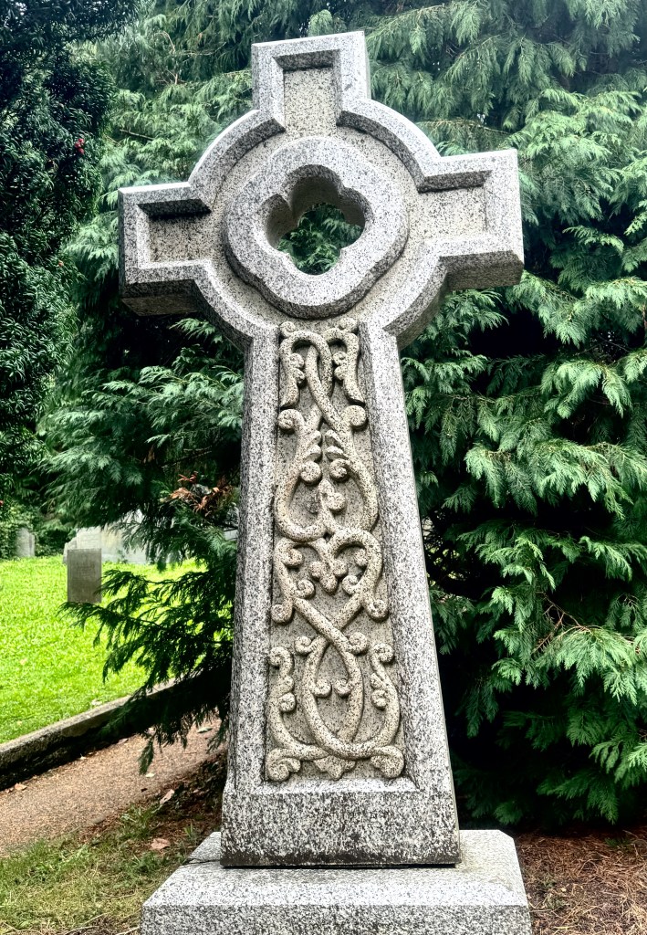 Mentioning the cemeteries, I’ve included a few photos of Celtic crosses, the classical circular section linking the arms of the cross. Although there are many modern replicas, the 9th century Celtic crosses at Iona (Scotland’s Hebrides islands) and Ahenny (Ireland) are usually considered the two major origin places associated with Christian Celtic crosses.