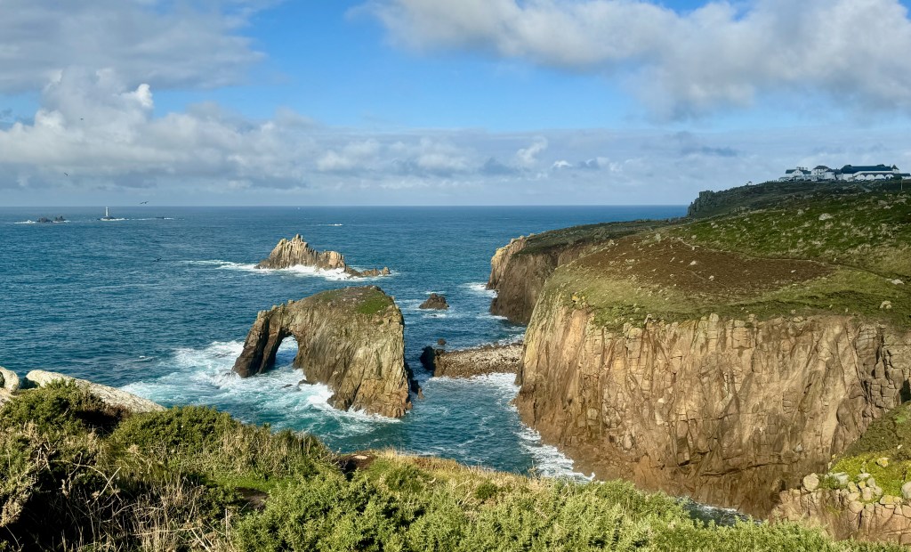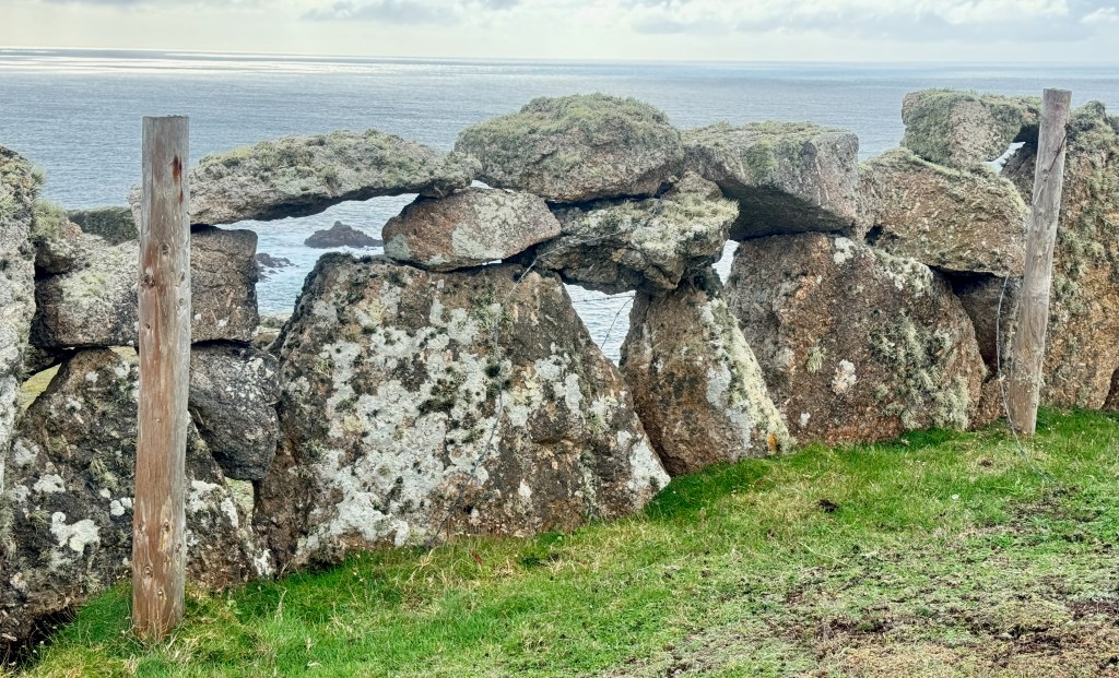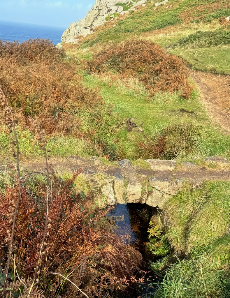 Although Cornwall’s rock structure emerged 350 million years ago when Cornwall was south of the equator, it still is being shaped by water and wind. Along the SWCP, I see sea arches along the coast. Inland, I see stones that bear a resemblance to a native-American looking reverently toward the heavens. Near Lizard Point, I see stones that appears to be a human face turned skyward.
