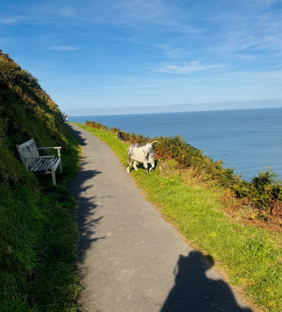 Unlike most other long-distance walks, I sometimes could see miles ahead. Even if the trail dips, I can see the ocean and the coastline. In many places I walk on gorse or heather covered headlands. At other times, I walked across pastures on those headlands.