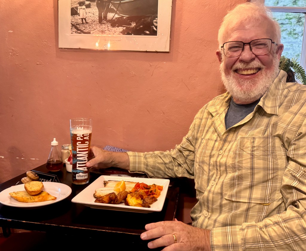 In that perennial question, is the journey or the destination more important? On this slow-walk, the journey stands out more. Although all of these place names blur together as I try to remember specific ones, I have no difficulty remembering certain incidents or experiences. Eating my “true” English pastie. Talking with Louise, a 75-year-old woman from Maine. Learning about fishermen and miners. Walking in the rain. Walking in the rain over and over. Delighting in the beautiful brightness of days after a rain. Simply standing and watching the waves. Listening to those waves crash on the rocks. On and on and on.