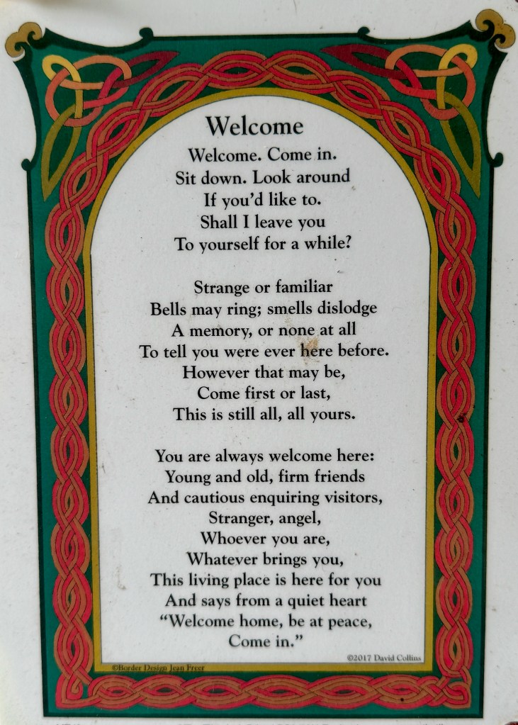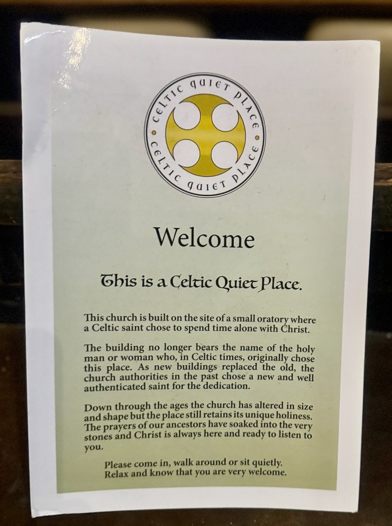 Because of late 19th and 20th revivals, the legacy of these Celtic saints continues today. Having previously visited Iona twice, the arrival place by St. Columba, I was thrilled when the Wells Cathedral used an Iona service for morning prayer. Because of their wide-spread presence in Cornwall, Canon Robinson, a Church of England vicar, formed an association of “Celtic Quiet Places.” “By joining together as Cornish Celtic Quiet Places, we can support one another and offer something unique to Cornwall that celebrates our Celtic heritage, and keeps the doors open all year round. All that is required of each church is that they are open at the times they say they will be and welcoming to all-comers.” In Robinson’s opinion, “Climate change, environmentalism, and the ever-growing stress many people face in their daily lives has resulted in a renewed interest in Celtic Christianity.” This interest is exemplified in one parish where children are taught St. Columba’s history on an old-time felt board. I love it!