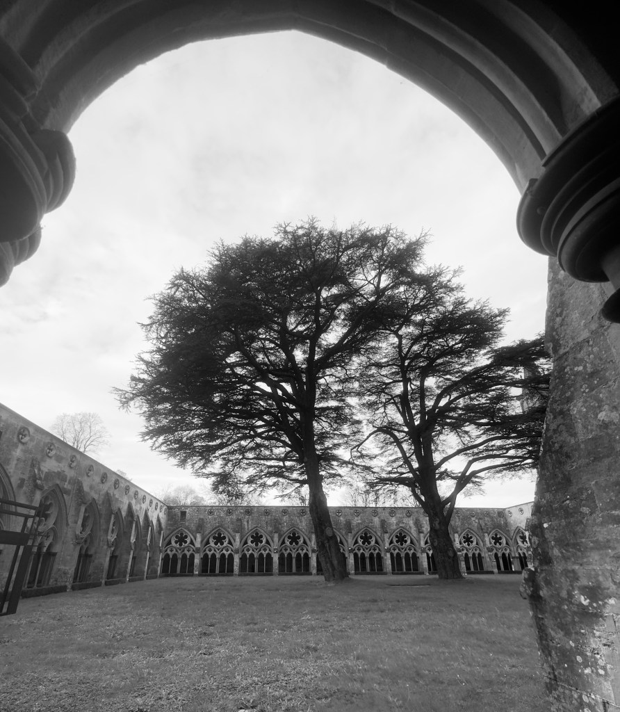 The smaller stonework within the Cathedral catches my attention. There is a childless knight who had some unusual features carved into the soles of his feet. On one foot is an oak leaf, a sign of strength; on the other foot is a monk bent in prayer. Since the man has no children to pray for him, he has the stone chiseled monk to do the praying! There is a “bumping stone” where an older boy chorister gently, or not so gently, bumps the head of a new chorister against a stone pillar. There are carefully carved wooden angels in the quire. There is a monkey pelting processing clergy and monks with nuts. There are signs of superstition such as the small, graffiti-like webs carved to capture any wandering demons. A more recent addition is the candle to remember “Prisoners of Conscience.”
