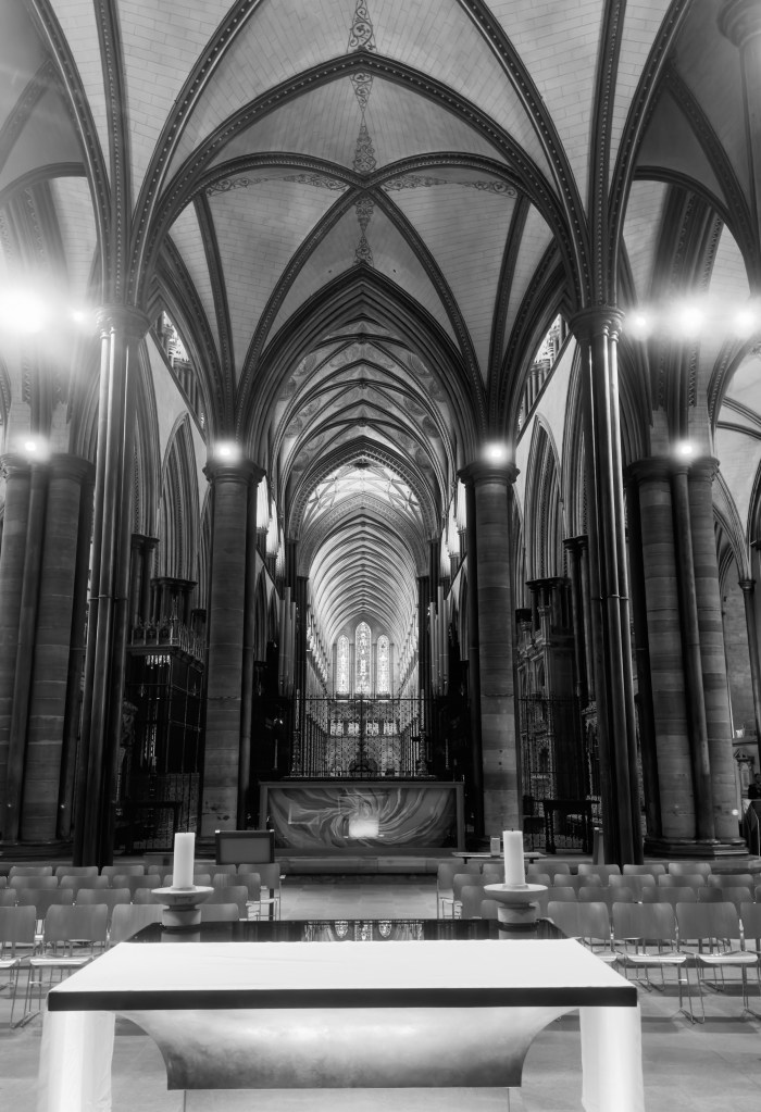The nave is beautiful with its striking ceiling. A baptismal font has been added in 2008. It is a large font with water gradually draining from its four corners. Since the font is so large, it allows perfect reflections of different views of the cathedral.