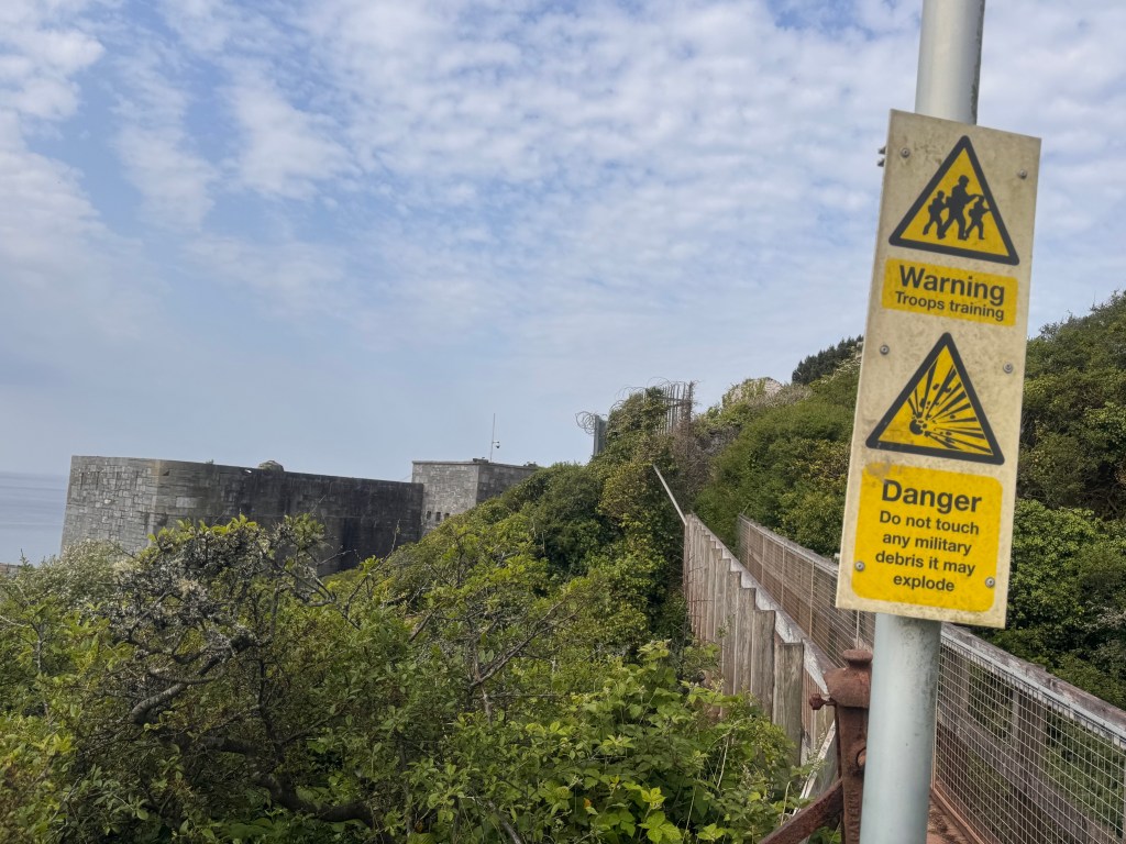 The path is an object of observation and curiosity. That isn’t quite right. My attitude is more than observation and curiosity. I watch to see how close to the cliff edge the trail veers; I watch to see how many military installations I pass!