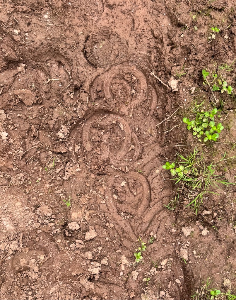 Of course, I also notice that the path is used not only by walkers who I meet very, very frequently, but also by others. From a cyclists to evidence of horse riders. This cyclist regrets his choice!