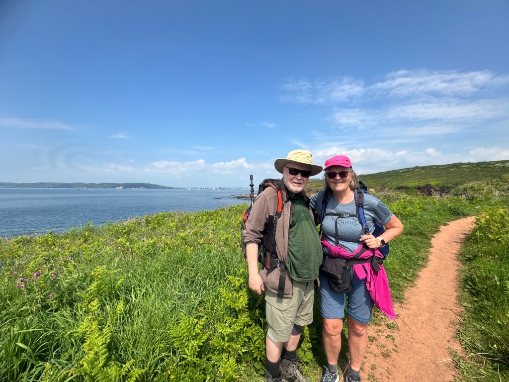 I meet a Norwegian couple, Ida and Knut. Having walked from the beginning of the South West Coast Path at Minehead to Falmouth and then from the end of the SWCP at Poole to Exmouth, Ida is now walking the middle third of the SWCP. Because Norway encouraged people to “get out and walk” during Covid, she is another “Covid-inspired hiker.” She began to walk and walk and walk. She proudly describes walking eleven hours one day. “I saw parts of Bergen and the surrounding mountains that I’d never seen before.” When I tell Knut that my grandfather was born in Sweden, he talks about how many Scandinavians had to migrate. “Too much poverty in the 1870’s and 1880’s.” “My uncle was a skilled brass artisan and couldn’t find work. He moved to Washington State. Although he found work, he only returned to see his family once. Cost too much for those who were poor.” Like others that I’ve met from Germany and Switzerland, let alone England, Ida and Knut have stories.