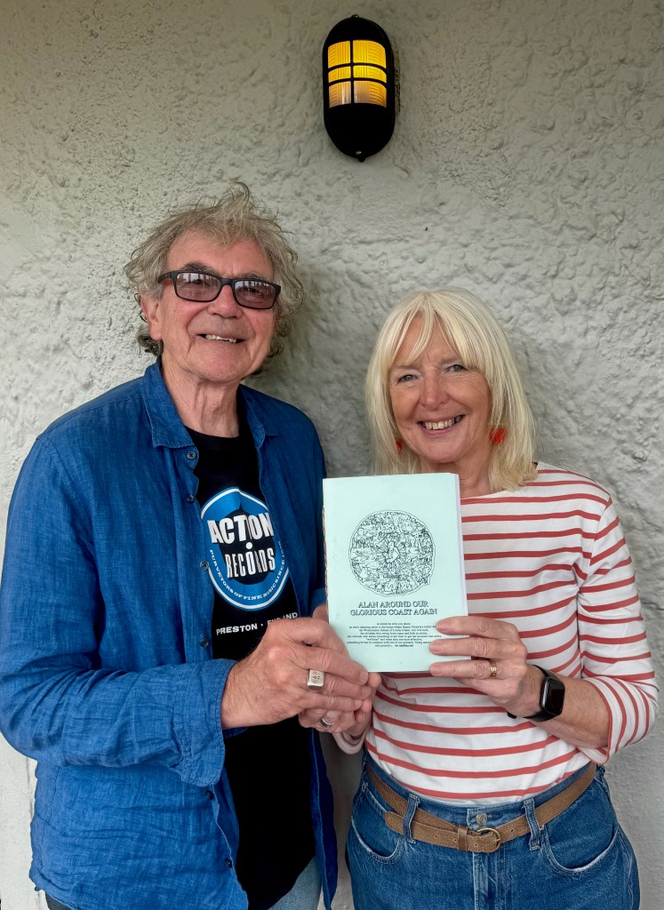 Before they leave to catch their train to Truro, I take their photo, Alan’s book in hand. Anthony and Linda Frost. I airmail Linda the photo. We keep waving and grinning at each other as I watch them from the restaurant walk through the garden to the train station.