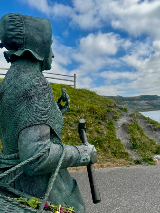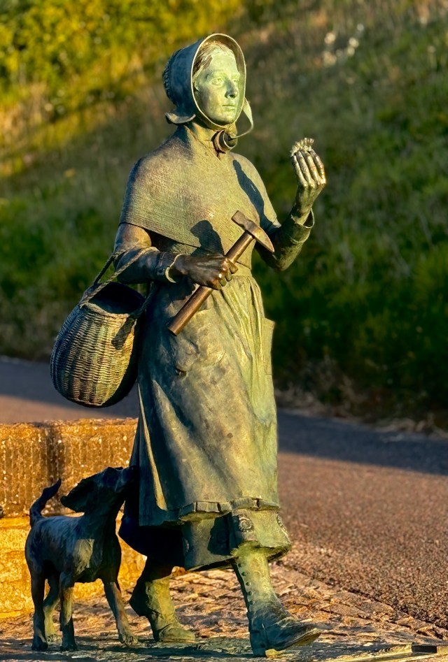 Look at the statue that has been only recently completed. Initiated by a 12-year old girl who insisted that her community, her world, should recognize this woman. A good likeness if I don’t say so myself. Moving forward with assurance. Determination in her face. Eyes looking down the coast, or is it even further into time? Holding her small, hand chisel as the tool to chisel away misunderstandings about our earth’s past.