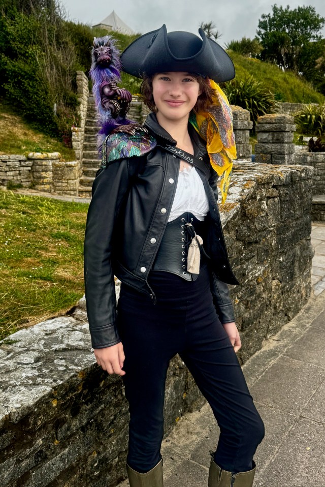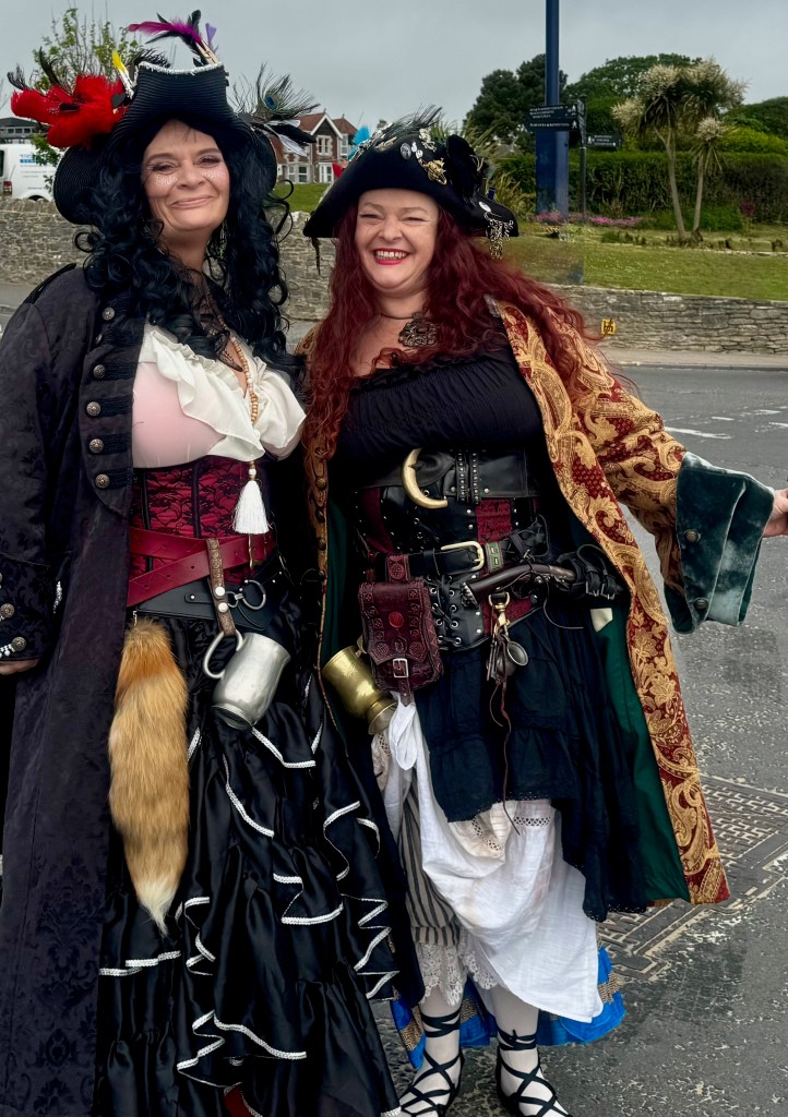 The day is initially sunny as I leave around my usual 9:00AM. I walk with a spring in my feet as it’s the last day where I’m free from carrying my backpack! I head for the beach. What do I see? There’s a pirate and a “cabin daughter” with a parrot on her shoulder. “May I take your photo and what’s going on?” “Sure, and there is a Pirate Festival today and tomorrow. Just up the hill here.”