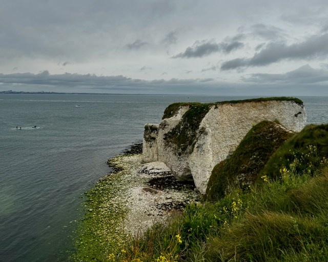 I’m two hours into my walk when I approach a hill overlooking Old Harry’s Rocks. Again, I just love the English names for their landscape. There is debate to whom “Old Harry” refers. On the one hand, “Harry” is an old English term for the devil. On the other hand, “Harry” could refer to the local 17th century pirate Harry Paye. The debate continues.