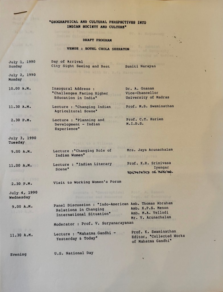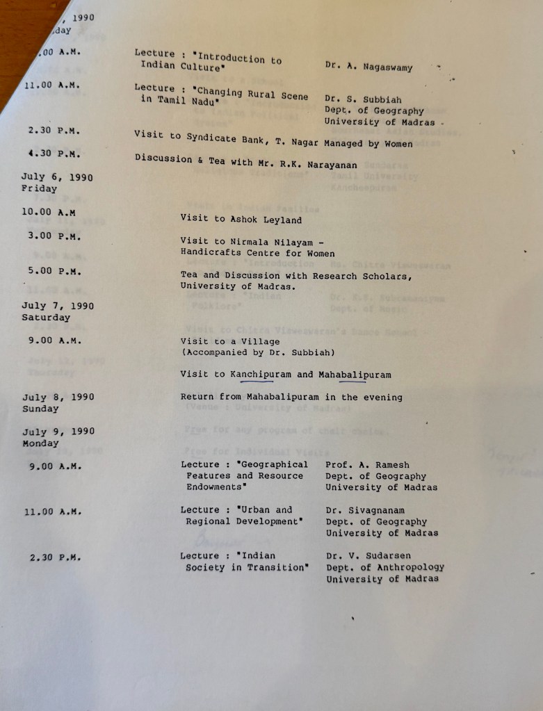 An important footnote. I’m writing about this experience 35 years later (late 2025 and early 2026). I better have a good memory! Not really! Besides keeping a journal, posting frequent letters, and writing a 50 page single-space document “Passages in India” which combined personal experiences and seminar insights, I have enough written material to recover many aspects of the seminar and trip. In addition, upon my return I proceeded to keep the academic side of the trip alive by doing post-doctoral work in South Asian studies as well as teaching Reinhardt courses on South Asia. The seminar was quite a stimulant!