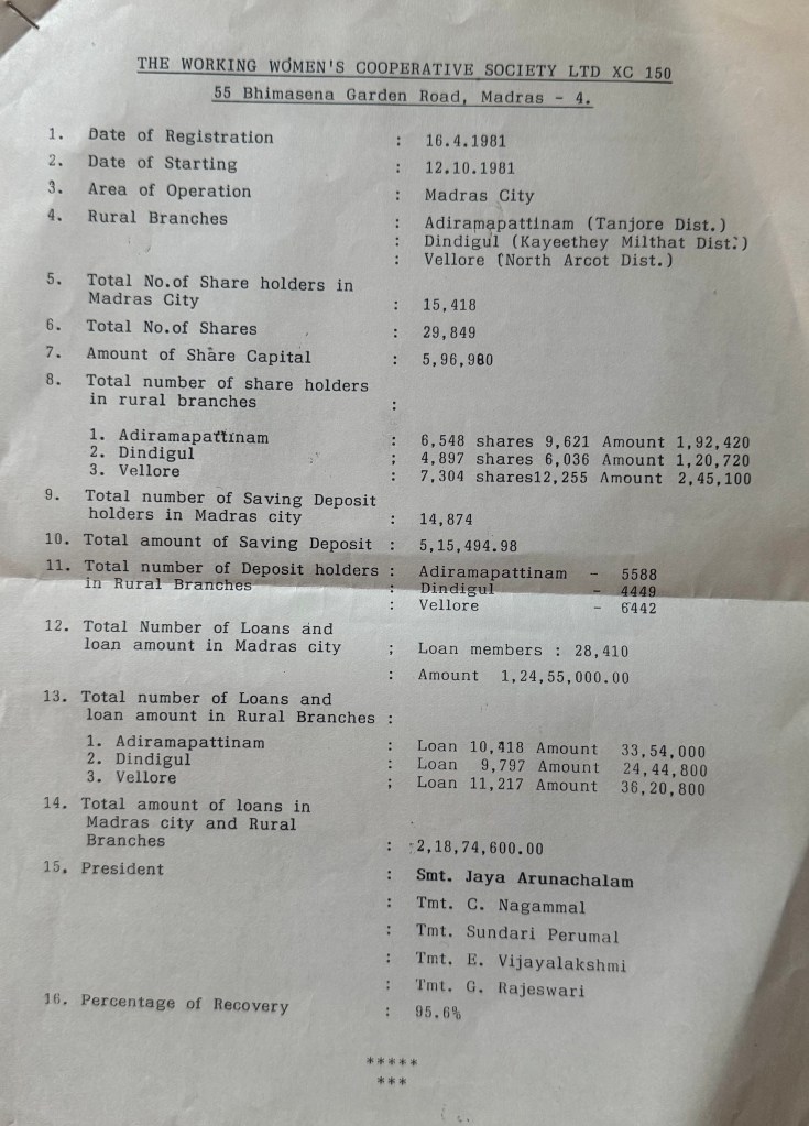 As I write this blog, I googled Madras Working Women’s Forum. It still exists. It has expanded. It has become recognized globally. In July 2011, former US state secretary Hillary Clinton conducted a visit to the WWF. Although now deceased, Ms. Arunachalam was given national and international awards for her work!