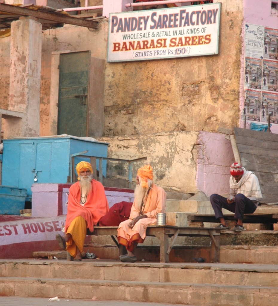 On another walking tour with Jai, we visit a Varanasi Muslim section. In one courtyard, he introduces me to a family making cloth, dying the fabric, and drying the fabric. The Muslim family sells the cloth to Hindu merchants who make “Banaras Saris” for Hindu women. Muslims helping Hindus by making saris; Hindus helping Muslims by buying those saris. A nice interdependence where both parties win!