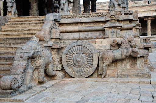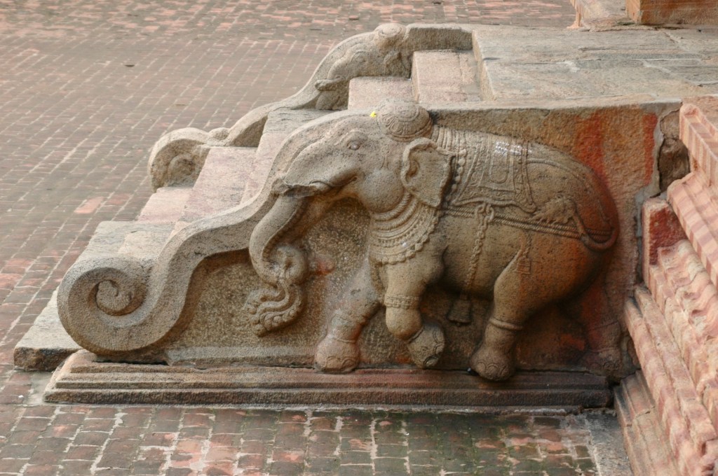We drive to the Airavatesvara temple. Among the eighteen Hindu Temples in this area, the Airavatesvara temple is a UNESCO site and one of the “Great Living Chola Temples.” The Chola empire consolidated much of southern India from the 9th to the 13th century. During its existence, the rulers built a number of impressive temples throughout the region.